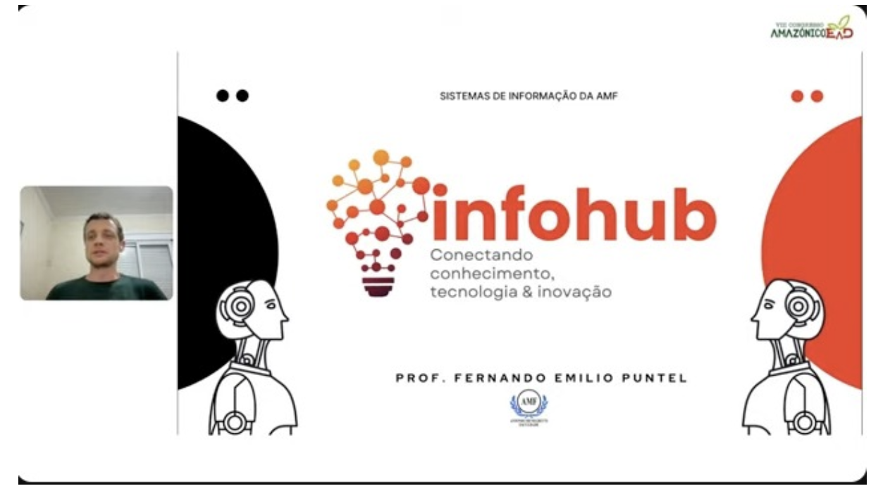 O Infohub ampliou ainda mais sua atuação no cenário nacional ao participar do VIII Congresso Amazônico de Educação a Distância, evento que reuniu pesquisadores, docentes e gestores de todo o país para discutir conectividade, ecossistemas de inovação e empreendedorismo na Amazônia. Nesse contexto, foi apresentada a palestra “Criar, Testar e Validar: o Caminho do MVP no InfoHub”, que demonstrou o modelo desenvolvido na AMF para orientar estudantes na criação, testagem e validação de ideias, consolidando o laboratório como uma referência em práticas educacionais inovadoras e no fortalecimento da cultura empreendedora na educação superior.